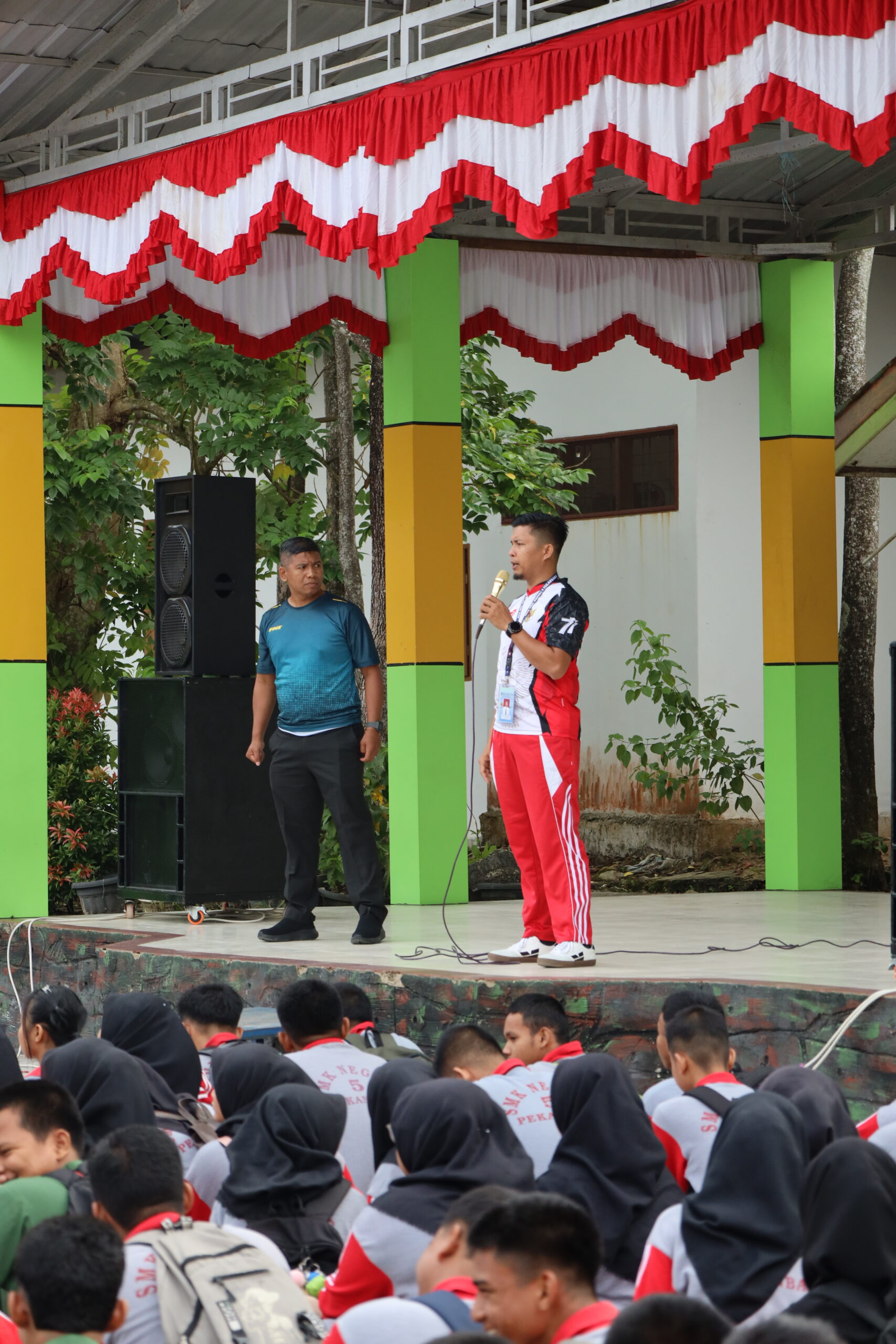 “Alhadmulillah, terimkasih saya ucapkan kepada tim panitia dari OSIS SMK negeri 5 pekanbaru yang telah menaja rangkaian kegiatan pemeriahan HUT RI Ke- 80 di SMK Negeri 5 Pekanbaru ini. Saya sangat berharap dengan adanya rangkaian kegiatan perlombaan ini dapat mempererat hubungan silaturrahmi antar peserta didik dan juga antar tenaga pendidik di SMK Negeri 5 Pekanbaru. Kemudian saya juga ucapkan selamat berlomba serta berkompetisi secara sportif, semoga kemenangan menyertai kita semua”, Jelas Kepala SMK Negeri 5 pekanbaru saat menyampaikan sambutan kepada tim.