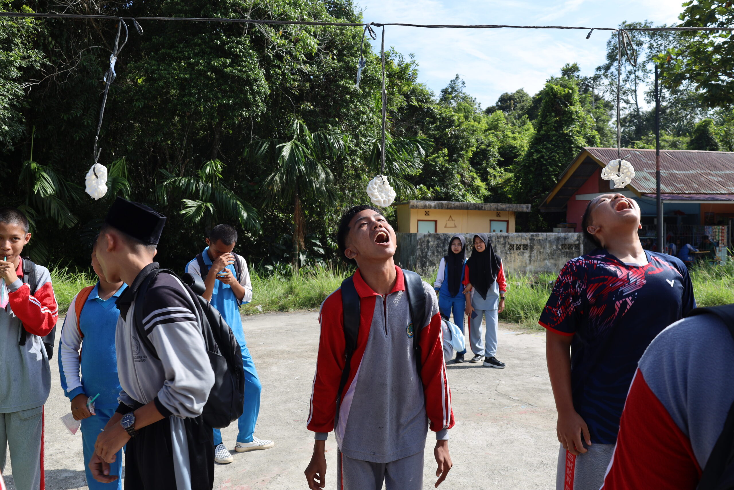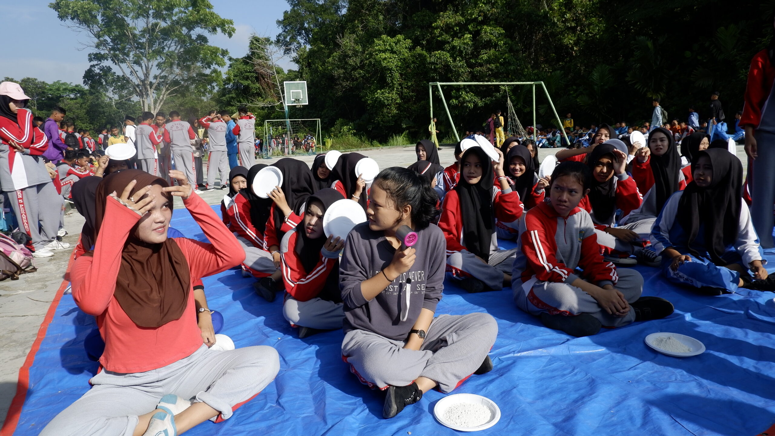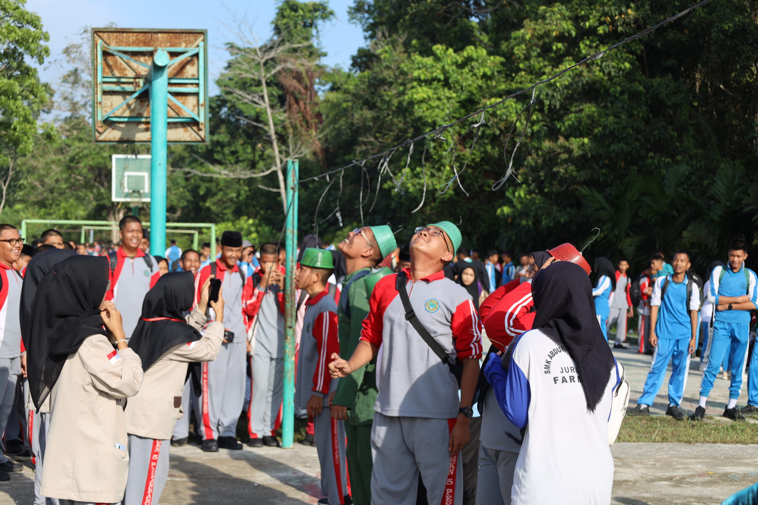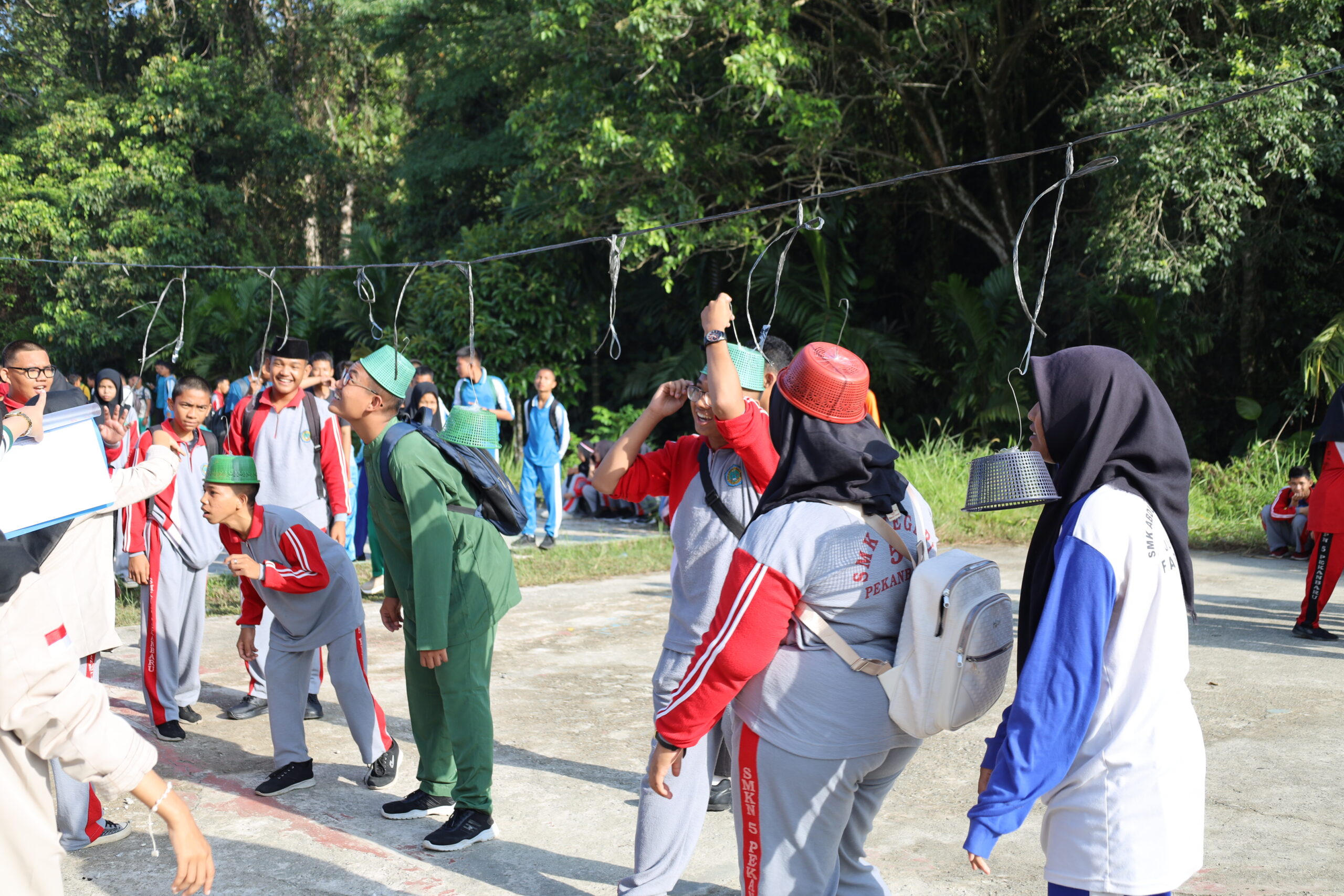 SMKNegeriPekanbaru.sch.id- OSIS SMK Negeri 5 Pekanbaru taja kegiatan perlombaan dalam rangka memeriahkan HUT Republik Indonesia Ke-80, Jumat,15/08/2025. Kegiatan perlombaan diadakan di lapangan kegiatan dan lapangan bola SMK Negeri 5 Pekanbaru. Perlombaan yang diadakan pada hari Jumat tersebut diikuti oleh peserta utusan dari masing-masing kelas dan jurusan yang berjumlah kurang lebih dari 450 peserta. Pihak panitia juga menyediakan perlombaan khusus guru-guru, di antaranya adalah lomba Cukurukuk, tarik tambang, injak balon dor dan Lomba Oper bola pimpong dalam air. Sedangkan untuk perlombaan peserta didik, Panitia menyiapkan 4 lomba secara individu utusan kelas dan 3 perlombaan kelompok. Adapun cabang perlombaan tersebut adalah lomba cukurukuk, lomba balap karung, lomba tarik tambang, lomba sepak bola corong, balap kelereng, oper tepung dan lomba makan kerupuk.