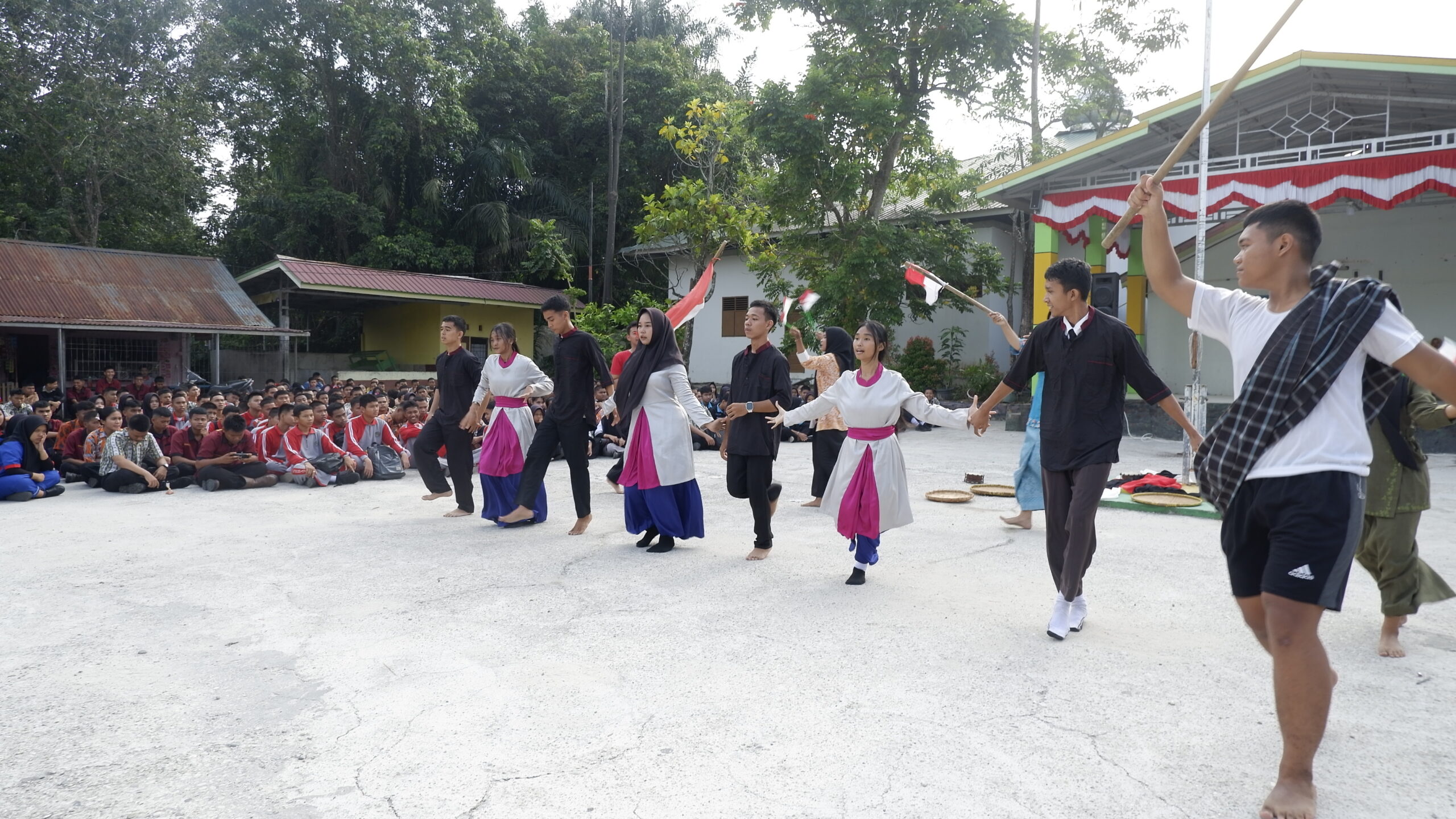 Penampilan seni Mak Yong oleh siswa jurusan Seni dan Industri Kreatif berhasil memukau seluruh penonton. Para siswa menampilkan lakon dengan penuh penghayatan, lengkap dengan musik tradisional dan kostum khas yang menambah keindahan pertunjukan. Suasana sekolah pun terasa hidup dan semarak oleh tepuk tangan serta sorak kagum dari para penonton.