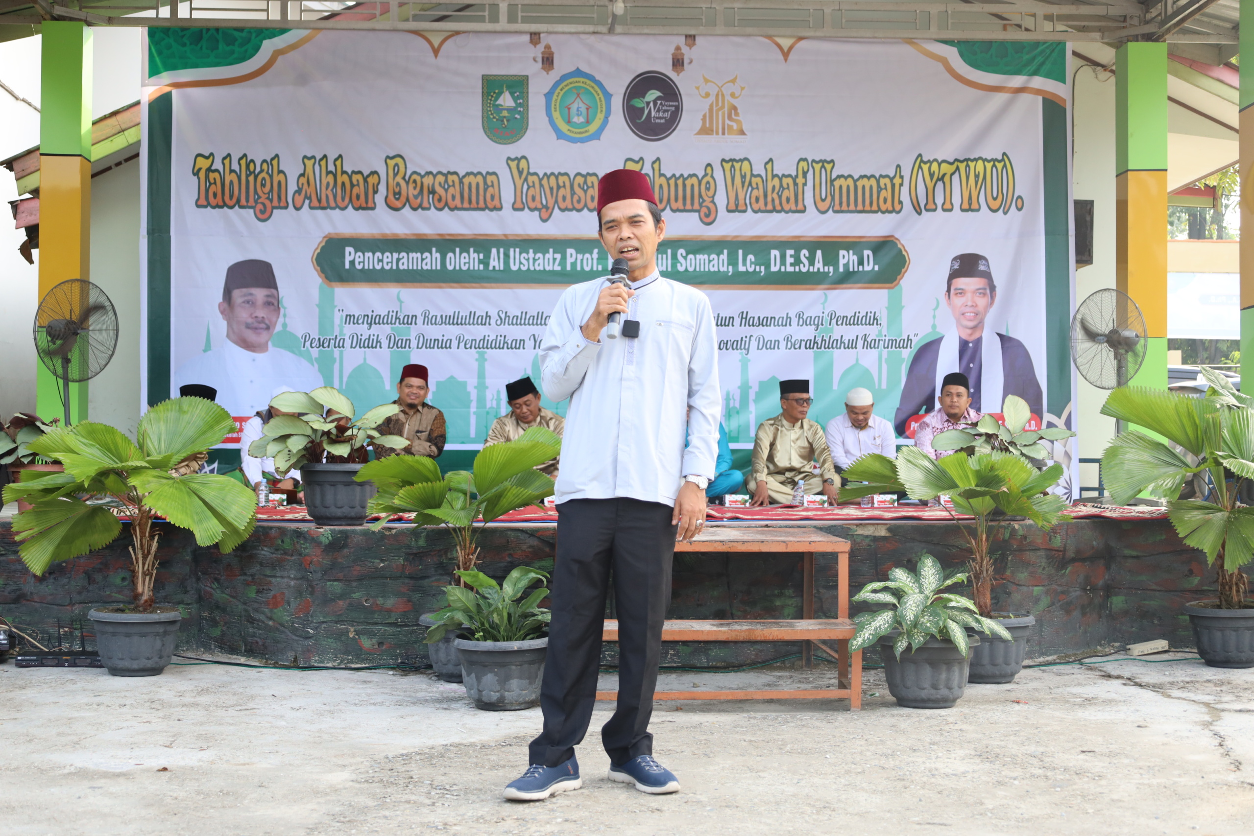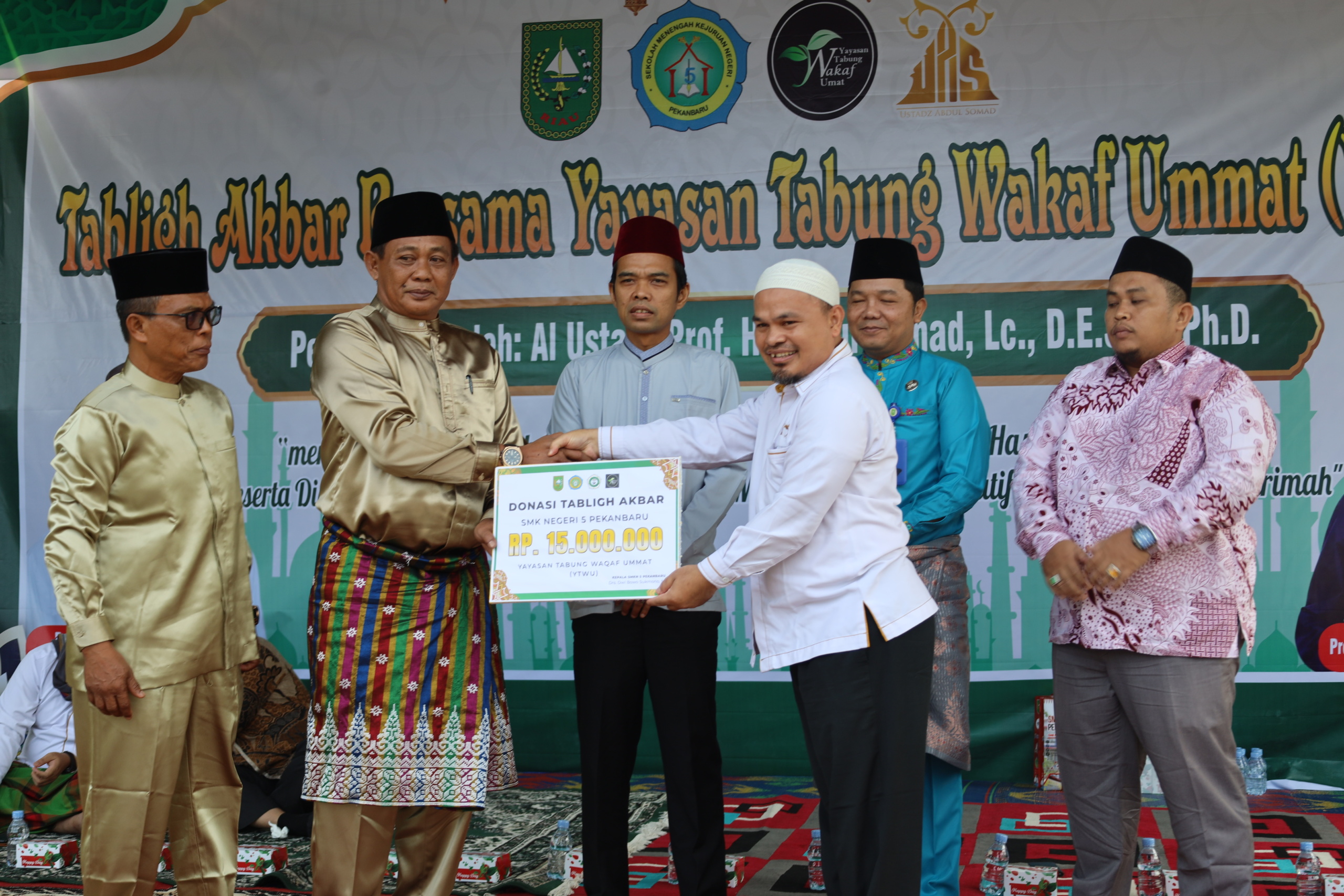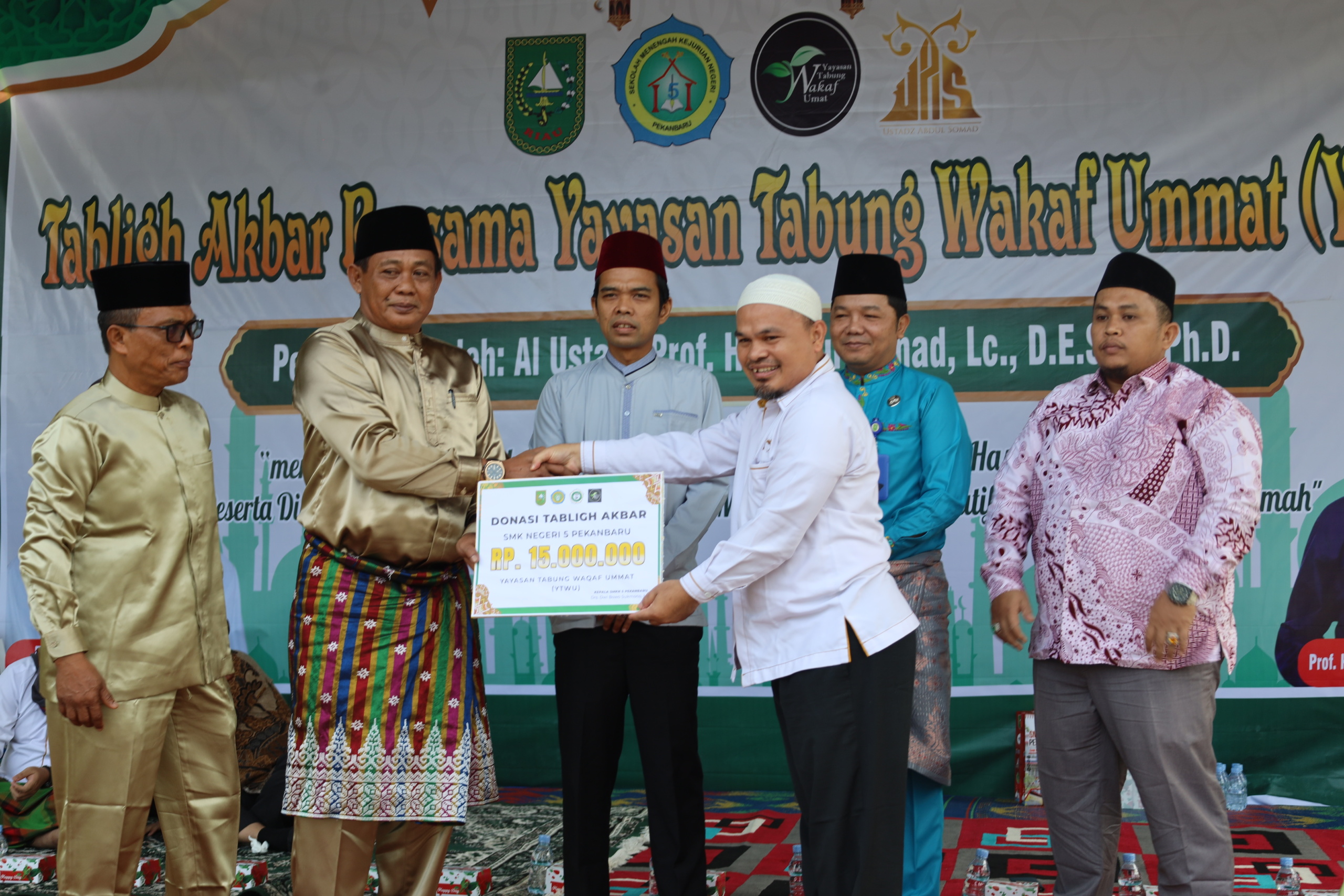 Smkn5pekanbaru.sch.id.sch.id-SMK Negeri 5 Pekanbaru taja tabligh akbar bersama Yayasan Tabung Wakaf Ummat (YTWU) di lapangan kegiatan SMK Negeri 5 Pekanbaru. Kegiatan tabligh akbar tersebut berkesempatan dengan menghadirkan Ustadz Prof. Dr. H. Abdul Somad, L.C., M.A, Jumat, 10/01/2025. Tabligh akbar ditaja sebagai bentuk silaturrahmi dan kepedulian SMK Negeri 5 Pekanbaru akan pendidikan agama islam di wilayah Riau. Hal ini terbukti dnegan adanya penggalangan dana yang disumbangkan di Yayasan Tabung Wakaf Ummat (YTWU) Pekanbaru untuk pembangunan pondok pesantren dan pengembangan pendidikan islam yang Alhamdulillah mencapai di Rp. 15.000.000. Penyerahan dana bantuan langsung diserahkan oleh Kepala SMK Negeri 5 Pekanbaru melalui YTWU secara simbolis sebelum rangkaian kegiatan tabligh akbar dimulai.