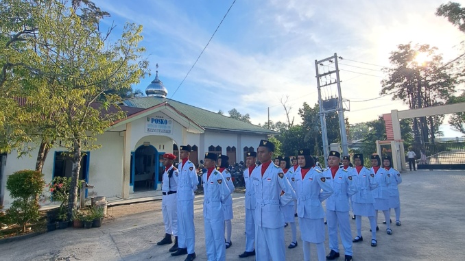 Peserta upacara tampil istimewa dengan mengenakan pakaian adat. Para siswi dan guru perempuan mengenakan kebaya, sementara siswa dan guru laki-laki mengenakan pakaian formal nasional yang disesuaikan, menciptakan suasana penuh warna dan semangat kebangsaan.