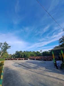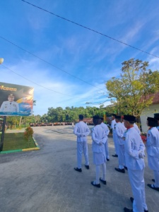 Peserta upacara tampil istimewa dengan mengenakan pakaian adat. Para siswi dan guru perempuan mengenakan kebaya, sementara siswa dan guru laki-laki mengenakan pakaian formal nasional yang disesuaikan, menciptakan suasana penuh warna dan semangat kebangsaan.
